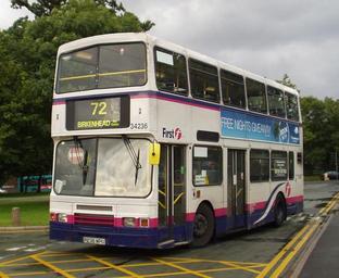 | Keywords: First Volvo Olympian 1.jpg First Chester and the Wirral bus 34236 reg P236 MPU a 1997 Volvo Olympian double-decker with Alexander RH bodywork pictured at Arrowe Park Hospital Wirral University Teaching Hospital NHS Foundation Trust in the Wirral England It was one 16 such dual-door buses built by Alexander's Belfast plant for Capital Citybus for use on the London Buses route 91 running from Trafalgar Square to Crouch End Broadway which the company had won from MTL London Capital Citybus were a post-deregulation entrant to the London market using a yellow livery These buses however were delivered after it was decreed that buses operating London tendered routes must have an 80 red livery so only a thin upper and thick lower yellow stripe was applied to the otherwise red livery The batch was delivered as fleet no s 223-238 P223-236 MPU The batch remained in London on the 91 through the company's transition into First Group ownership eventually gaining VA-class prefixes to their fleetnumbers as was the standard in the traditional London companies As step-entrance buses the batch lasted longer than most in central London as low-floor buses began to be specified and weren't withdrawn until 2004 With the exception of 234/5/8 the entire batch were withdrawn between March and May 2004 and transferred to Rock Ferry depot in the Wirral part of First's Potteries subsidiary There they were all renumbered into First's national numbering scheme losing the VA and gaining '34' so VA236 became 34236 It's pictured here in First corporate livery having remained as a dual door bus conversion to single door is more common for most cascaded ex-London buses Own 2007-07-26 Quackdave Alexander RH on Volvo Olympian buses in the United Kingdom P236 MPU P prefix registered buses in the United Kingdom P236 MPU FirstGroup buses in the United Kingdom Public transport buses in the United Kingdom Buses in the United Kingdom photographed in July 2007 Buses in the Metropolitan Borough of Wirral Arrowe |