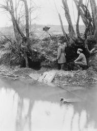 | Keywords: First World War Photographers Q113418.jpg First World War Photographers<br/> An American official photographer of the US Signal Corps and his assistant carry out reconnaissance photography under cover of a deep river bank by the River Aire on the Western Front They are using a glass plate camera mounted on a tripod to photograph the German lines American official photographer US Signal Corps 1918-11-06 First World War Q 113418 205196674 http //media iwm org uk/iwm/mediaLib//39/media-39640/large jpg This image was created and released by the Imperial War Museum on the http //www iwm org uk/corporate/privacy-copyright/licence IWM Non Commercial Licence Photographs taken or artworks created by a member of the forces during their active service duties in the First World War became covered by Crown Copyright provisions and so faithful reproductions may be reused under that licence which is considered expired 50 years after their creation Associated themes United States Army 1914-1918 Western Front 1914-1918 Associated keywords Photography Reconnaissance American First World War Official Exchange Collection photographs PD-USGov American First World War Official Exchange collection Images uploaded by Fæ |