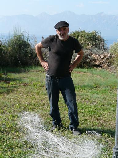 Keywords: fischer fisherman man person human male network stand hat cap cheerful