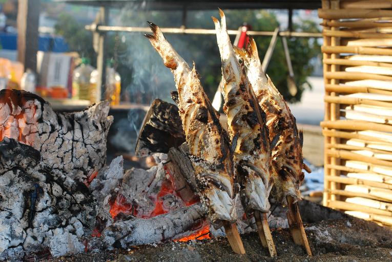 Keywords: fish barbecue fire grilled food meal grill fresh