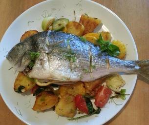 Keywords: fish dish meal eat cook food