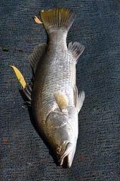 Keywords: fish sea life baramundi ocean marine animal marine life scales large silver tropical fins fishing fishes sea