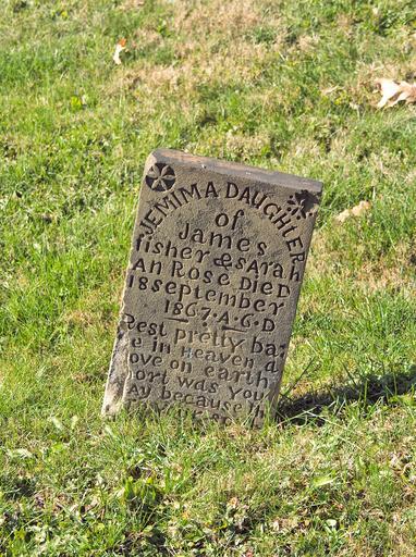 | Keywords: Fisher (Jemima), Brush Creek Cemetery, 2015-10-26, 01.jpg Grave marker in Brush Creek Cemetery near Irwin Pennsylvania 2015-10-26 own Cbaile19 cc-zero Brush Creek Cemetery Hempfield Township Westmoreland County Pennsylvania Uploaded with VicuñaUploader |