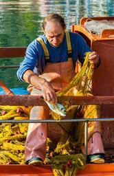 Keywords: fisherman work sivota greece man working catch fish net marine harbor seafood