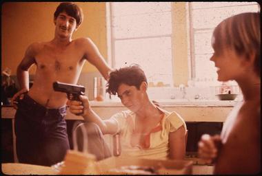 | Keywords: FISHERMAN'S SONS - NARA - 544233.jpg Scope and content General notes 544233 Local identifier 412-DA-1740 Environmental Protection Agency 12/02/1970 - NARA-Author Messina John 1940- Photographer 8464458 <br /> Bayou Gauche Saint Charles parish Louisiana United States North and Central America inhabited place 3334819 29 783 -90 4 <br /> Still Picture Records Section Special Media Archives Services Division NWCS-S National Archives at College Park 8601 Adelphi Road College Park MD 20740-6001 08/1972 Record group Record Group 412 Records of the Environmental Protection Agency 1944 - 2006 Record group ARC 708 DOCUMERICA The Environmental Protection Agency's Program to Photographically Document Subjects of Environmental Concern compiled 1972 - 1977 Series ARC 542493 File unit File unit ARC Variant control numbers Agency-Assigned Identifier 029/60/001740<br /> NAIL Control Number NWDNS-412-DA-1740 Other versions <gallery> File FISHERMAN'S_SONS_-_NARA_-_544233 tif tif File FISHERMAN'S_SONS_-_NARA_-_544233 jpg jpg </gallery> NARA-cooperation PD-USGov Bayou Gauche 1972 Brothers 1972 Males with pistols Bayou Gauche Firearms of the United States Bayou Gauche Adolescent boys in the United States 1972 Boys of the United States 1972 People of Louisiana Bayou Gauche Topless standing men 1972 Kitchens in Louisiana Bayou Gauche 1972 in Louisiana John Messina - DOCUMERICA Bayou Gauche NARA images of Louisiana 1972 People in home kitchens August 1972 in the United States Three males Topless people in kitchens |
