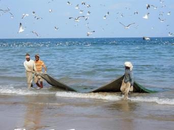 Keywords: fishermen fishing sea net fishing net catch birds gulls flying oman persian gulf indian ocean