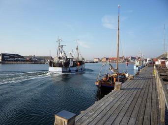 Keywords: fishing boat boot fishing ship port dogger picturesque sea denmark baltic sea coast north water blue scandinavia sky white