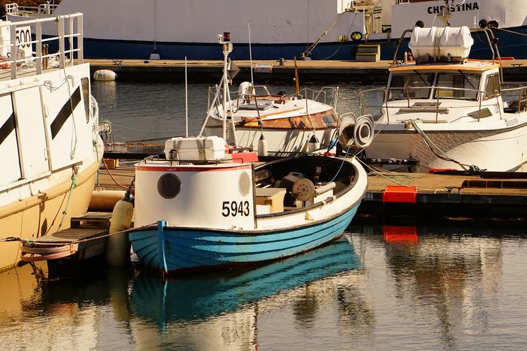 Keywords: fishing boat port picturesque colorful water fischer mirroring