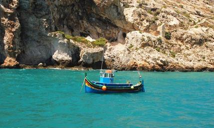 Keywords: fishing boat water sea bark rocky coast
