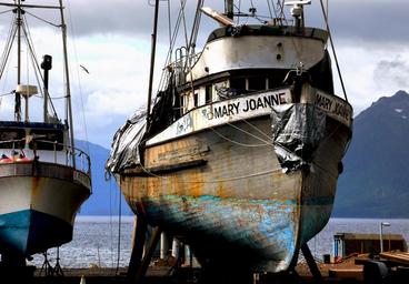 Keywords: fishing boats dry dock ocean sea vessels outdoors shore harbor marine port nautical wooden maintenance