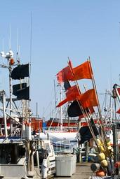 Keywords: fishing boats fishing industry buoys flags harbor atmosphere