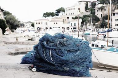 Keywords: fishing net fishing port harbor spain mediterranean net rope harbour boats sailing docks houses city town