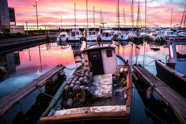 Keywords: fishing port fishing port fishing boats sunrise dawn colors sun sky france
