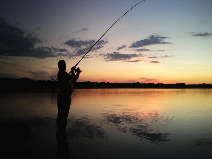Keywords: fishing sunset water outdoor fisherman sport rod silhouette man