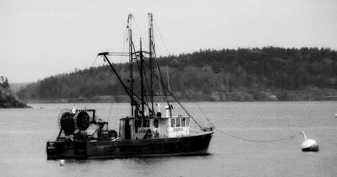 Keywords: fishing trawler boat pacific black and white ocean shoreline scenery maritime water coastal line