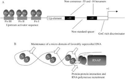 | Keywords: Fisregulation.jpg Uploaded with en wp UW marker 2012 12 10 fis regulation http //www sciencedirect com/science/article/pii/S0065216408010022 Regulation by the Fis protein of the transcription of a gene coding for stable RNA A Summary of the main features of a Fis-dependent stable RNA operon promoter The three binding sites for Fis are labeled with Roman numerals The Up-element is a cis-acting DNA element that contacts the carboxyl-terminal domain of the α subunit of RNA polymerase The angled arrow labeled +1 shows the location of the transcription start site B The Fis protein can influence transcription by protein “protein contact with RNA polymerase RNAP and by the maintenance through protein “DNA contact of a microdomain of appropriately supercoiled DNA at the target promoter http //www sciencedirect com/science/article/pii/S0065216408010022 Regulation by the Fis protein of the transcription of a gene coding for stable RNA A Summary of the main features of a Fis-dependent stable RNA operon promoter The three binding sites for Fis are labeled with Roman numerals The Up-element is a cis-acting DNA element that contacts the carboxyl-terminal domain of the α subunit of RNA polymerase The angled arrow labeled +1 shows the location of the transcription start site B The Fis protein can influence transcription by protein “protein contact with RNA polymerase RNAP and by the maintenance through protein “DNA contact of a microdomain of appropriately supercoiled DNA at the target promoter Uncategorized 2014 December 4 |