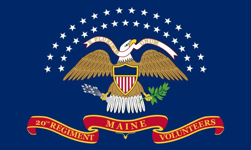 | Keywords: Flag of the 20th Maine Volunteer Infantry Regiment.svg en Flag used by the 20th Maine Regiment in the American Civil War Own John McKean 2009-08-14 Blue green red white yellow flags E Pluribus Unum Flags of Maine Flags of the American Civil War Flags with arrows Flags with banners Flags with branches Flags with eagles Flags with more than twenty stars Flags with stars in semicircle formation Flags with white five-pointed stars Infantry flags of the United States Army Inscribed flags names Maine in the American Civil War Military flags with stars Military in Maine SVG flags - historical of the United States SVG flags - military of the United States SVG in Latin |