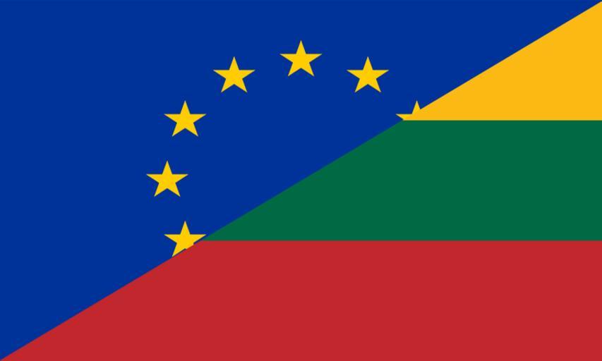 Keywords: Flag of Europe and Lithuania.png en Flag of Lithuania and EU own Bearas Diagonal divided hybrid flags Hybrids with the flag of Lithuania Europe Hybrids with the flag of the European Union Lithuania