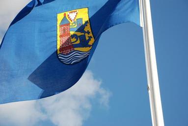 Keywords: flag flensburg ge blue cloud day light sign sun waving wave germany holstein wind schleswig-holstein town sky north fluttering flagge