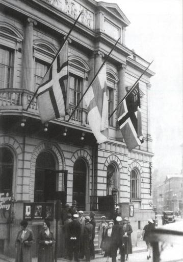 Keywords: Flag Ingria down.jpg ru Полуспущенные флаги Инге манландии Финляндии и Восточной Ка елии на ф онтоне Ста ого студенческого дома в Хельсинки в знак п отеста п отив депо таций из Инге манландии и Восточной Ка елии Осень 1934 г Пекка евалайнен «Изгои Российские беженцы в Финляндии 1917 1939 » ст 160-161 2003 ISBN 5-87516-020-9 Author 1934 PD-old Former countries of Europe Flags of Ingria |