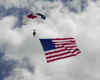 Keywords: flag skydiver american cloud parachute sky usa patriotic skydiving airshow fly blue red white