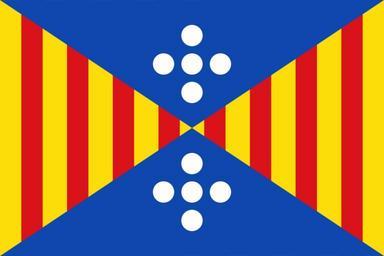 | Keywords: Flag of Vilagrassa Spain.svg Bandera de Vilagrassa Lleida Espanya Bandera apaïsada de proporcions dos d'alt per tres de llarg quarterada en aspa amb els triangles superior i inferior blaus amb cinc disc blancs posats en creu cadascun de diàmetre 1/12 de l'alçària del drap i separats per 1/36 de la mateixa alçada centrats a cada un dels dos triangles; i els triangles dels costats grocs cadascun amb quatre pals vermells <ref> cite web http //www gencat cat/eadop/imatges/2981/99243018 pdf RESOLUCIÓ d'1 de setembre de 1999 per la qual es dóna conformitat a l'adopció de la bandera del municipi de Vilagrassa 2012-06-01 1999-09-23 pdf DOGC núm 2981 Generalitat de Catalunya català </ref> Bandera de Vilagrasa Lérida España Bandera de proporciones 2 3 cuartelada en aspa con los triángulos superior e inferior azules con cinco discos blancos puestos en cruz cada uno de diámetro 1/12 de la altura del paño y separados por 1/36 de la misma altura centrados en cada uno de los dos triángulos; y los triángulos de los lados amarillos con cuatro palos rojos <ref> cite web http //www gencat cat/eadop/imagenes/2981/99243018 pdf RESOLUCIÓN de 1 de septiembre de 1999 por la que se da conformidad a la adopción de la bandera del municipio de Vilagrassa 2012-06-01 1999-09-23 pdf DOGC núm 2981 Generalidad de Cataluña español </ref> en Flag of Vilagrassa in Lleida province Spain Flag quartered in saltire Blue top and bottom each with five white discs in the shape of a cross the discs as wide as 1/12 of the flag's height and separated from one another by 1/36 of the flag's height centred on each triangle Yellow hoist and fly each with four vertical red stripes Source http //flagspot net/flags/es-l-vgs html References reflist Own Nethunter 2008-08-30 insignia Catalonia <gallery>Bandera de Vilagrassa svg Bandera de Vilagrassa svg</gallery> Flags of municipalities of the province of Lleida Vilagrassa Vilagrassa SVG flags of Spain SVG flags with an aspect ratio of 3 2 Diagonal quartered flags |