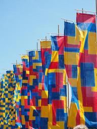 Keywords: flags blow flutter commemorative event blue red yellow