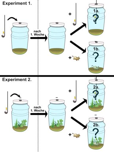 Keywords: Flaschengarten-Priestley Arbeitsblatt.svg de Arbeitsblatt zum Flaschengarten Experiment nach Priestley 2016-11-20 own A Spielhoff other versions cc-zero Photosynthesis Famous experiments Bottle garden