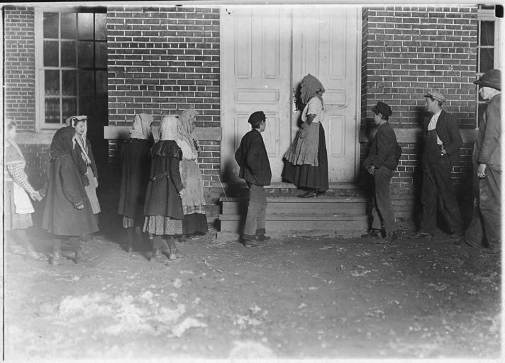 | Keywords: Flashlight photo of children on night shift going to work at 6 P.M. on a cold, dark December day - NARA - 523139.jpg Scope and content Flashlight photo of children on night shift going to work at 6 P M on a cold dark December day They do not come out again until 6A M When they went home the next morning they were all drenched by a heavy cold rain and had few or no wraps Two of the smaller girls with three other sisters work on the night shift and support a big lazy father who complains he is not well enough to work He loafs around the country store The oldest three of these sisters have been in the mill for 7 years and the two youngest two years The latter earns 84 cents a night each There are three small children at home to recruit the family finances when necessary The two girls on the rear end of the line were about 50 inches high One has been in the mill 2 years 1/2 a year at night and runs 8 sides part of the time The other has been in the mill 2 years; ----- 1 year at night They both look under 12 years old Whitnel N C General notes 523139 Local identifier 102-LH-435 Department of Commerce and Labor Children's Bureau 1912 - 1913 NARA-Author Hine Lewis Wickes 1874-1940 Photographer 1122914 <br /> Still Picture Records Section Special Media Archives Services Division NWCS-S National Archives at College Park 8601 Adelphi Road College Park MD 20740-6001 12/1908 Record group Record Group 102 Records of the Children's Bureau 1908 - 2003 Record group ARC 431 National Child Labor Committee Photographs taken by Lewis Hine compiled ca 1912 - ca 1912 documenting the period 1908 - 1912 Series ARC 523064 File unit File unit ARC Variant control numbers NAIL Control Number NWDNS-102-LH-435 Other versions <gallery> File Flashlight_photo_of_children_on_night_shift_going_to_work_at_6_P M _on_a_cold _dark_December_day_-_NARA_-_523139 tif tif File Flashlight_photo_of_children_on_night_shift_going_to_work_at_6_P M _on_a_cold _dark_December_day_-_NARA_-_523139 jpg jpg </gallery> NARA-cooperation PD-USGov Child labor in the United States |