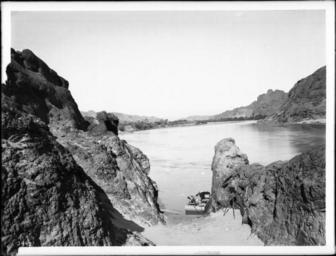 Keywords: Flat boat moored in Needles Canyon, on the Colorado River, 1900-1950 (CHS-3443).jpg Needles California 1900-1950 The boat loaded with camping gear is tied up at one of the few sandy shores spilling out between the tall rocky outcroppings of the canyon wall A camera on a tripod sits near the boat on the sand Call number CHS-3443 Photographer James George Wharton Filename CHS-3443 Coverage date 1900/1950 Part of collection California Historical Society Collection 1860-1960 Format glass plate negatives Type images Part of subcollection Title Insurance and Trust and C C Pierce Photography Collection 1860-1960 Repository name USC Libraries Special Collections Accession number 3443 Microfiche number 1-61- Archival file chs_Volume95/CHS-3443 tiff Repository address Doheny Memorial Library Los Angeles CA 90089-0189 Geographic subject country USA Format aacr2 2 photographs glass photonegative photoprint b w ; 17 x 22 cm Rights Digitally reproduced by the USC Digital Library; From the California Historical Society Collection at the University of Southern California Subject adlf canyons Project USC Repository email specol usc edu Contributing entity California Historical Society Date created 1900/1950 Publisher of the digital version University of Southern California Libraries Format aat photographic prints; photographs Geographic subject state Arizona Legacy record ID chs-m16062; USC-1-1-1-14306 Geographic subject rivers Colorado River; canyons Needles Canyon Access conditions Send requests to address or e-mail given Phone 213 821-2366; fax 213 740-2343 Subject file heading Natural features -- Rivers -- Colorado River Subject lcsh Rivers 1900/1950 date created George Wharton James 1858 1923 http //digitallibrary usc edu/cdm/ref/collection/p15799coll65/id/16003 PD-old-70-1923 Needles California Boats in California Colorado River California Black and white photographs of California Images from USC Digital Library uploaded by Fæ Photographs by George Wharton James California Historical Society Collection 1860-1960 Glass plate negatives