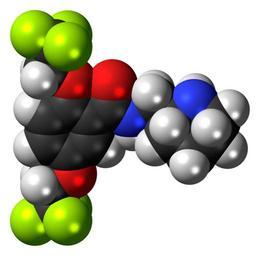 | Keywords: Flecainide 3D spacefill.png Space-filling model of the flecainide molecule an antiarrhythmic agent Colour code 505050 Carbon C black<br> F0F0F0 Hydrogen H white<br> F51E1E Oxygen O red<br> 3C50FA Nitrogen N blue<br> C8FA00 Yellow-green Fluorine F<br> 2011-07-03 own DS Visualizer Jynto talk Ball-and-stick version cc-zero Images by Jynto Space-filling models Antiarrhythmic agents trifluoromethyl compounds Benzamides Phenol ethers Piperidines | ||||