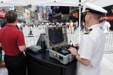 | Keywords: Fleet Week New York 2014 140525-N-PO203-047.jpg en Cmdr Heath Rasmussen assigned to the Office of Naval Research ONR science and technology reserve unit demonstrates a Mark II Talon robot from the Naval Surface Warfare Center Indian Head EOD Technology Division in Times Square during Fleet Week New York Now in its 26th year Fleet Week New York is the city's time-honored celebration of the sea services U S Navy photo by John F Williams/Released 2014-05-25 John Williams https //www dvidshub net/image/1366666 140525-N-PO203-047 2014-05-27 21 09 NEW YORK NY US PD-USGov-Military-Navy Office of Naval Research Images from DoD uploaded by Fæ |