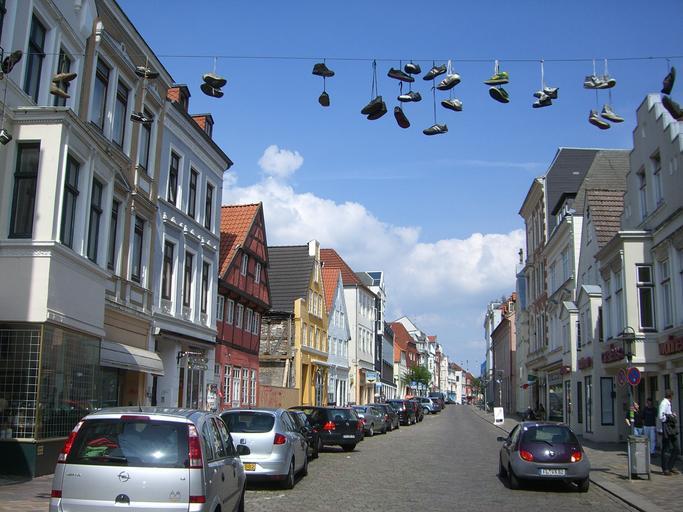 Keywords: flensburg downtown norderstraße shoes leash tradition shoes in the air