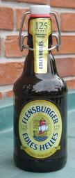 Keywords: FlensburgerEdlesHelles.jpg en A bottle of Flensburger Edles Helles own Miguel Andrade 2013-08-18 Cc-zero Beer bottles brown glass Flensburger Bier Coats of arms of Flensburg