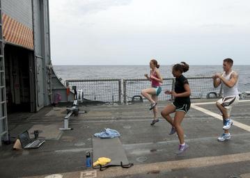 | Keywords: Flickr - Official U.S. Navy Imagery - Sailors PT..jpg CARIBBEAN SEA July 30 2012 Lt j g Kellye Quirk left Ensign Clarissa Carpio and Operations Specialist 2nd Class Paul Grace exercise on the flight deck of the Oliver Hazard Perry-class guided-missile frigate USS Underwood FFG 36 Underwood is deployed to Central and South America and the Caribbean in support of Southern Seas 2012 U S Navy photo by Mass Communication Specialist 2nd Class Stuart Phillips/Released 120730-N-NL541-030 Join the conversation http //www facebook com/USNavy www facebook com/USNavy http //www twitter com/USNavy www twitter com/USNavy http //navylive dodlive mil navylive dodlive mil http //www flickr com/photos/usnavy/7691038286/ Sailors PT 2012-07-30 15 31 http //www flickr com/people/56594044 N06 Official Navy Page from United States of America Mass Communication Specialist 2nd Class Stuart Phillips/U S Navy U S Navy Photo PD-USGov-Military-Navy Official U S Navy Imagery http //flickr com/photos/56594044 N06/7691038286 2012-11-12 18 51 51 cc-by-2 0 Images from United States Navy to check United States Navy images |