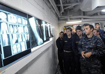 | Keywords: Flickr - Official U.S. Navy Imagery - U.S. Naval Academy midshipmen look at a set of x-rays..jpg SAN DIEGO July 25 2012 U S Naval Academy midshipmen look at a set of x-rays during a tour of the medical department aboard the amphibious assault ship USS Makin Island LHD 8 The group toured the ship ™s medical department during their 2012 professional training of midshipmen PROTRAMID program Fifty-four midshipmen got underway with the crew of Makin Island to learn about naval surface operations and experience life at sea U S Navy photo by Mass Communication Specialist 1st Class David McKee/Released 120725-N-FH966-017 Join the conversation http //www facebook com/USNavy www facebook com/USNavy http //www twitter com/USNavy www twitter com/USNavy http //navylive dodlive mil navylive dodlive mil http //www flickr com/photos/usnavy/7676397240/ U S Naval Academy midshipmen look at a set of x-rays 2012-07-25 10 10 http //www flickr com/people/56594044 N06 Official Navy Page from United States of America MC1 SW David McKee/U S Navy U S Navy photo PD-USGov-Military-Navy Official U S Navy Imagery http //flickr com/photos/56594044 N06/7676397240 2012-11-12 22 12 38 cc-by-2 0 Images from United States Navy to check |