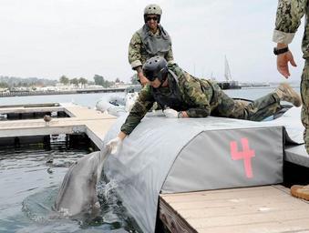 | Keywords: Flickr - Official U.S. Navy Imagery - A dolphin is coaxed onto a transport mat..jpg SAN DIEGO July 13 2012 KOA an Atlantic bottlenose dolphin is coaxed onto a transport mat during a Rim of the Pacific 2012 exercise Twenty-two nations more than 40 ships and submarines more than 200 aircraft and 25 000 personnel are participating in RIMPAC exercise from Jun 29 to Aug 3 The world's largest international maritime exercise RIMPAC provides a unique training opportunity that helps participants foster and sustain the cooperative relationships that are critical to ensuring the safety of sea lanes and security on the world's oceans RIMPAC 2012 is the 23rd exercise in the series that began in 1971 U S Navy photo by Mass Communication Specialist 2nd Class Shannon E Renfroe/Released 120713-N-FC670-033 Join the conversation http //www facebook com/USNavy www facebook com/USNavy http //www twitter com/USNavy www twitter com/USNavy http //navylive dodlive mil navylive dodlive mil http //www flickr com/photos/usnavy/7643439422/ A dolphin is coaxed onto a transport mat 2007-12-31 17 25 http //www flickr com/people/56594044 N06 Official Navy Page from United States of America MC2 Shannon E Renfroe/U S Navy U S Navy photo PD-USGov-Military-Navy Official U S Navy Imagery http //flickr com/photos/56594044 N06/7643439422 2012-11-12 20 13 44 cc-by-2 0 United States Navy Marine Mammal Program |