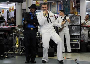 | Keywords: Flickr - Official U.S. Navy Imagery - a vocalist and and a performer from the Royal Malaysian navy’s, Blue Wave Band perform together..jpg IPOH Malaysia June 17 2012 Musician 3rd Class Gabriel Brown right a vocalist assigned to the U S 7th Fleet Band š Orient Express and a performer from the Royal Malaysian navy ™s Blue Wave Band perform Michael Jackson ™s Smooth Criminal for hundreds of guests at Greentown Mall during a joint concert between the U S and Royal Malaysian Navies The event is part of Cooperation Afloat Readiness and Training CARAT Malaysia 2012 CARAT is a series of bilateral military exercises between the U S Navy and the armed forces of Bangladesh Brunei Cambodia Indonesia Malaysia the Philippines Singapore and Thailand Timor Leste joins CARAT for the first time in 2012 U S Navy photo by Mass Communication Specialist 1st Class N Ross Taylor/Released 120617-N-KB052-166 Join the conversation http //www facebook com/USNavy www facebook com/USNavy http //www twitter com/USNavy www twitter com/USNavy http //navylive dodlive mil navylive dodlive mil http //www flickr com/photos/usnavy/7407242854/ a vocalist and and a performer from the Royal Malaysian navy ™s Blue Wave Band perform together 2012-06-17 17 03 http //www flickr com/people/56594044 N06 Official Navy Page from United States of America N Ross Taylor/U S Navy U S Navy photo PD-USGov-Military-Navy Official U S Navy Imagery http //flickr com/photos/56594044 N06/7407242854 2012-11-13 07 08 09 cc-by-2 0 Images from United States Navy to check Cooperation Afloat Readiness and Training 2012 |