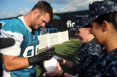 | Keywords: Flickr - Official U.S. Navy Imagery - Sailors get a signature from a Jaguar football player..jpg JACKSONVILLE Fla Nov 6 2012 Zach Potter Tight End for the Jacksonville Jaguars signs sports memorabilia for Sailors following a Jaguars practice More than 300 Sailors and Marines gathered in the Jaguars practice stadium to meet the players as part of the city of Jacksonville's Week of Valor and in preparation for the upcoming Navy-Marine Corps Classic The game honors veterans active and reserve service members and military families America's away team the Navy and Marine Corps are reliable flexible and ready to respond worldwide on above and below the sea as well as ashore Join the conversation in social media using BBallOnDeck U S Navy photo by Mass Communication Specialist 2nd Class Gary A Prill/Released 121106-N-RB564-122 Join the conversation http //www facebook com/USNavy www facebook com/USNavy http //www twitter com/USNavy www twitter com/USNavy http //navylive dodlive mil navylive dodlive mil http //www flickr com/photos/usnavy/8169525334/ Sailors get a signature from a Jaguar football player 2012-11-06 15 40 http //www flickr com/people/56594044 N06 Official Navy Page from United States of America Mass Communication Specialist 2nd Class Gary A Prill/U S Navy U S Navy photo PD-USGov-Military-Navy Official U S Navy Imagery http //flickr com/photos/56594044 N06/8169525334 2012-11-11 23 25 44 cc-by-2 0 Images from United States Navy to check Zach Potter |