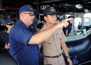 | Keywords: Flickr - Official U.S. Navy Imagery - U.S. and Royal Thai Navy officers discuss ship's speed and distance..jpg U S Coast Guard Capt Kelly Hatfield left commanding officer of the Legend-class national security cutter USCGC Waesche WMSL 751 and Royal Thai Navy Lt j g Chaidech Chantarasena discuss ship's speed and distance for coming alongside the Royal Thai Navy replenishment ship HTMS Similan AORH 871 for a simulated refueling at sea Waesche is underway with the Arleigh Burke-class guided-missile destroyer USS Lassen DDG 82 and the amphibious dock landing ship USS Germantown LSD 42 for Cooperation Afloat Readiness and Training CARAT Thailand 2012 CARAT is a series of bilateral exercises held annually in Southeast Asia to strengthen relationships and enhance force readiness U S Navy photo by Mass Communication Specialist 1st Class N Ross Taylor/Released 120522-N-KB052-118 Join the conversation http //www facebook com/USNavy www facebook com/USNavy http //www twitter com/USNavy www twitter com/USNavy http //navylive dodlive mil navylive dodlive mil http //www flickr com/photos/usnavy/7267585446/ U S and Royal Thai Navy officers discuss ship's speed and distance 2012-05-22 18 13 http //www flickr com/people/56594044 N06 Official Navy Page from United States of America N Ross Taylor/U S Navy U S Navy photo PD-USGov-Military-Navy Official U S Navy Imagery http //flickr com/photos/56594044 N06/7267585446 2012-11-13 11 50 44 cc-by-2 0 Images from United States Navy to check CARAT Thailand 2012 |