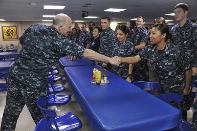 | Keywords: Flickr - Official U.S. Navy Imagery - the U.S. Navy Surgeon General and Chief, Bureau of Medicine and Surgery shakes hands with a Sailor..jpg GUAM May 22 2012 Vice Adm Matthew L Nathan the U S Navy Surgeon General and Chief Bureau of Medicine and Surgery offers the traditional handshake giving Yeoman 2nd Class Cecilia Mitchell a coin on the mess decks of the Military Sealift Command hospital ship USNS Mercy T-AH 19 Nathan leads a global healthcare network of 63 000 Navy medical personnel around the world who provide high-quality health care to more than one million eligible beneficiaries Navy Medicine personnel deploy with Sailors and Marines worldwide providing critical mission support aboard ship in air under the sea and on the battlefield While in Guam Pacific Partnership is scheduled to gain more than 300 additional medical and engineering personnel from U S and partner nation militaries as well as non-governmental organizations U S Navy photo by Mass Communication Specialist 2nd Class Roadell Hickman/Released 120522-N-7441-002 Join the conversation http //www facebook com/USNavy www facebook com/USNavy http //www twitter com/USNavy www twitter com/USNavy http //navylive dodlive mil navylive dodlive mil http //www flickr com/photos/usnavy/7256480488/ the U S Navy Surgeon General and Chief Bureau of Medicine and Surgery shakes hands with a Sailor 2012-05-21 15 40 http //www flickr com/people/56594044 N06 Official Navy Page from United States of America Mass Communication Specialist 2ND Class Roadell Hickman/U S Navy U S Navy photo PD-USGov-Military-Navy Official U S Navy Imagery http //flickr com/photos/56594044 N06/7256480488 2012-11-13 13 57 55 cc-by-2 0 Matthew L Nathan United States Navy images Handshakes involving the military Women in the United States Navy |