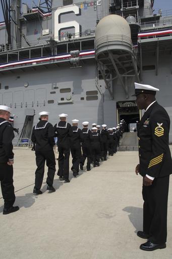 | Keywords: Flickr - Official U.S. Navy Imagery - Sailors run to man the ship..jpg SASEBO Japan April 23 2012 Sailors run to man the ship during an exchange of command ceremony between the amphibious assault ships USS Bonhomme Richard LHD 6 and USS Essex LHD 2 Bonhomme Richard is replacing Essex as the Navy's only full-time forward deployed large deck amphibious ship U S Navy photo by Senior Chief Mass Communication Specialist Joe Kane/Released 120423-N-ZC343-976 Join the conversation http //www facebook com/USNavy www facebook com/USNavy http //www twitter com/USNavy www twitter com/USNavy http //navylive dodlive mil navylive dodlive mil http //www flickr com/photos/usnavy/7113463407/ Sailors run to man the ship 2012-04-23 14 20 http //www flickr com/people/56594044 N06 Official Navy Page from United States of America MCCS Joe Kane/U S Navy U S Navy photo PD-USGov-Military-Navy Official U S Navy Imagery http //flickr com/photos/56594044 N06/7113463407 2012-11-13 17 55 09 cc-by-2 0 Images from United States Navy to check Photographs by Joseph Kane |