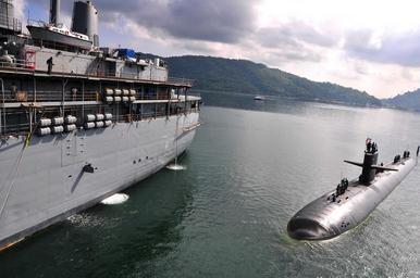 | Keywords: Flickr - Official U.S. Navy Imagery - USS Louisville maneuvers alongside the submarine tender USS Emory S. Land..jpg SEPANGAR Malaysia April 3 2011 The Los Angeles-class attack submarine USS Louisville SSN 724 maneuvers alongside the submarine tender USS Emory S Land AS 39 during a coordinated tended mooring and theater security cooperation port visit Louisville is on a deployment to the western Pacific region while Emory S Land is on an extended deployment to Guam serving as the U S 7th Fleet šÃ„ôs lead afloat fleet maintenance activity from the ship šÃ„ôs permanent homeport at Diego Garcia U S Navy photo by Mass Communication Specialist Seaman Apprentice Samuel Souvannason/Released 120403-N-JS205-109 http //www flickr com/photos/usnavy/6901555710/ USS Louisville maneuvers alongside the submarine tender USS Emory S Land 2012-04-03 04 58 http //www flickr com/people/56594044 N06 Official Navy Page from United States of America MCSA Samuel Souvannason/U S Navy U S Navy photo PD-USGov-Military-Navy Official U S Navy Imagery http //flickr com/photos/56594044 N06/6901555710 2012-11-13 20 16 41 cc-by-2 0 USS Louisville SSN-724 USS Emory S Land AS-39 |