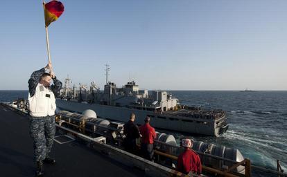 | Keywords: Flickr - Official U.S. Navy Imagery - Ships conduct a replenishment at sea. (5).jpg ARABIAN SEA Jan 16 2012 Yeoman 3rd Class Richard Harris signals the Military Sealift Command fast combat support ship USNS Bridge T-AOE 10 during a replenishment at sea with the Nimitz-class aircraft carrier USS John C Stennis CVN 74 John C Stennis is deployed to the U S 5th Fleet area of responsibility conducting maritime security operations and support missions as part of Operation Enduring Freedom U S Navy photo by Mass Communication Specialist 3rd Class Kenneth Abbate/Released 120116-N-OY799-042 http //www flickr com/photos/usnavy/6732002961/ Ships conduct a replenishment at sea 2012-01-16 11 17 http //www flickr com/people/56594044 N06 Official Navy Page from United States of America MC3 Kenneth Abbate/U S Navy Attribution License IPTC Caption-Abstract U S Navy photo PD-USGov-Military-Navy Official U S Navy Imagery http //flickr com/photos/56594044 N06/6732002961 2012-11-14 06 50 25 cc-by-2 0 Images from United States Navy to check United States Navy images |