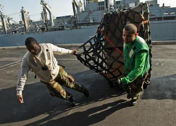 | Keywords: Flickr - Official U.S. Navy Imagery - Sailors pull cargo aboard the Nimitz-class aircraft carrier USS John C. Stennis..jpg ARABIAN SEA Jan 5 2012 Yeoman 3rd Class Jaren Cleveland and Logistics Specialist Seaman Luis Colon pull cargo aboard the Nimitz-class aircraft carrier USS John C Stennis CVN 74 during a replenishment at sea with the Military Sealift Command fast combat support ship USNS Rainier T-AOE 7 John C Stennis is deployed to the U S 5th Fleet area of responsibility conducting maritime security operations and support missions as part of Operation Enduring Freedom U S Navy photo by Mass Communication Specialist 3rd Class Benjamin Crossley/Released 120105-N-BT887-589 http //www flickr com/photos/usnavy/6667063339/ Sailors pull cargo aboard the Nimitz-class aircraft carrier USS John C Stennis 2012-01-09 09 47 http //www flickr com/people/56594044 N06 Official Navy Page from United States of America MC3 Benjamin Crossley/U S Navy U S Navy photo PD-USGov-Military-Navy Official U S Navy Imagery http //flickr com/photos/56594044 N06/6667063339 2012-11-14 07 04 11 cc-by-2 0 Images from United States Navy to check |
