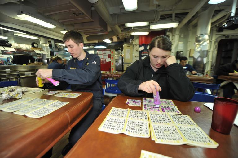 | Keywords: Flickr - Official U.S. Navy Imagery - Bingo.jpg MEDITERRANEAN SEA Nov 22 2011 Ensign Richard W Gochnauer left and Lt j g Cassandra E Hauser play bingo on the mess decks aboard the guided-missile destroyer USS Truxtun DDG 103 Truxtun is deployed as part of the George H W Bush Carrier Strike Group in support of maritime security operations and theater security cooperation efforts in the U S 6th Fleet area of responsibility U S Navy photo by Mass Communication Specialist 2nd Class Tony D Curtis/Released 111122-N-YZ751-153 http //www flickr com/photos/usnavy/6431703135/ Bingo 2011-11-30 12 26 http //www flickr com/people/56594044 N06 Official Navy Page from United States of America U S Navy Photo by Mass Communication Specialist 2nd Class Tony D Curtis/Released /U S Navy U S Navy photo PD-USGov-Military-Navy Official U S Navy Imagery http //flickr com/photos/56594044 N06/6431703135 2012-11-14 09 03 14 cc-by-2 0 Images from United States Navy to check United States Navy images |
