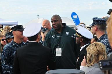 | Keywords: Flickr - Official U.S. Navy Imagery - Magic Johnson greets service members..jpg SAN DIEGO Nov 11 2011 Magic Johnson greets service members attending the Quicken Loans Carrier Classic basketball game on the flight deck of the aircraft carrier USS Carl Vinson CVN 70 Carl Vinson is hosting Michigan State University and the University of North Carolina for an NCAA basketball game U S Navy photo by Mass Communication Specialist Seaman Apprentice Zachary Bell/Released 111111-N-ZI635-738 http //www flickr com/photos/usnavy/6344355288/ Magic Johnson greets service members 2011-11-11 18 40 http //www flickr com/people/56594044 N06 Official Navy Page from United States of America MCSA Zachary Bell/U S Navy U S Navy photo PD-USGov-Military-Navy Official U S Navy Imagery http //flickr com/photos/56594044 N06/6344355288 2012-11-14 08 51 03 cc-by-2 0 Images from United States Navy to check |