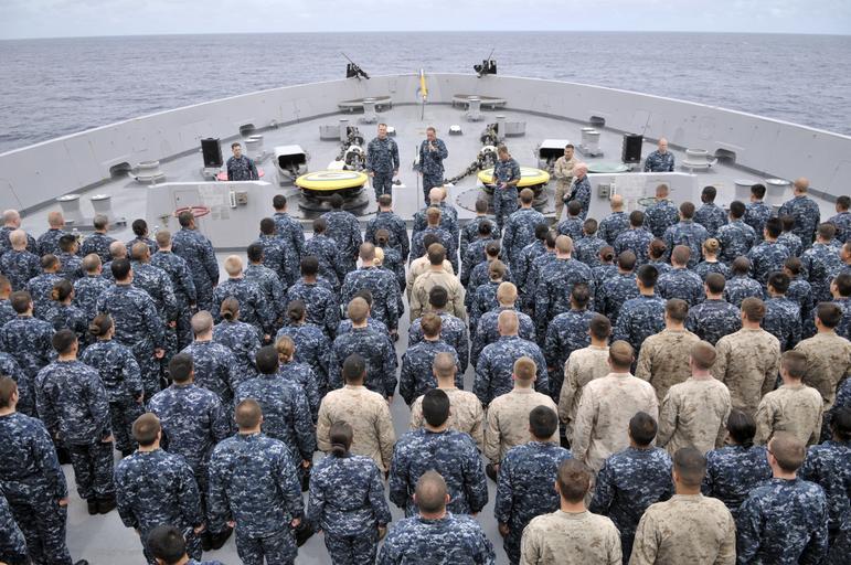 | Keywords: Flickr - Official U.S. Navy Imagery - USS Green Bay captain addresses Sailors and Marines during an all-hands call on the foc’sle.jpg 110818-N-GW695-584 INDIAN OCEAN Aug 18 2011 Cmdr Kevin Meyers commanding officer of the amphibious transport dock ship USS Green Bay LPD 20 addresses Sailors and Marines during an all-hands call on the foc ™sle of the ship Green Bay and the embarked 13th Marine Expeditionary Unit 13th MEU are underway in the U S 7th Fleet area of responsibility during Green Bay ™s first western Pacific deployment U S Navy photo by Mass Communication Specialist 3rd Class Stephen M Votaw/Released http //www flickr com/photos/usnavy/6082978549/ USS Green Bay captain addresses Sailors and Marines during an all-hands call on the foc ™sle 2011-08-18 16 00 http //www flickr com/people/56594044 N06 Official Navy Page from United States of America Mass Communication Specialist 3rd Class Stephen M Votaw/U S Navy Attribution License IPTC Source Navy Visual News Service PD-USGov-Military-Navy Official U S Navy Imagery http //flickr com/photos/56594044 N06/6082978549 2012-11-14 13 00 17 cc-by-2 0 Images from United States Navy to check |