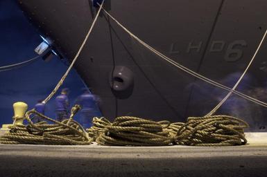 | Keywords: Flickr - Official U.S. Navy Imagery - USS Bonhomme Sailors tie the ship to the pier at Naval Base San Diego..jpg SAN DIEGO April 13 2011 Sailors assigned to the amphibious assault ship USS Bonhomme Richard LHD 6 tie the ship to the pier after transiting from NASSCO dry dock to Naval Base San Diego Bonhomme Richard completed a four-month maintenance and upgrade period in dry dock U S Navy photo by Chief Mass Communication Specialist Joe Kane/Released 110413-N-ZC343-514 http //www flickr com/photos/usnavy/5644523982/ USS Bonhomme Sailors tie the ship to the pier at Naval Base San Diego 2011-04-13 23 27 http //www flickr com/people/56594044 N06 Official Navy Page from United States of America MCC Joe Kane/U S Navy Attribution License XMP-photoshop Source Navy Visual News Service PD-USGov-Military-Navy Official U S Navy Imagery http //flickr com/photos/56594044 N06/5644523982 2012-11-15 12 50 43 cc-by-2 0 USS Bonhomme Richard LHD-6 NASSCO floating dry dock Mooring Naval ship arrivals to Naval Base San Diego Photographs by Joseph Kane |
