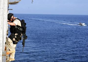 | Keywords: Flickr - Official U.S. Navy Imagery - USS Leyte Gulf Sailor responds to a pirate attempt..jpg ARABIAN SEA March 25 2011 A Sailor assigned to the visit board search and seizure VBSS team aboard the guided-missile cruiser USS Leyte Gulf CG 55 climbs down the side of the ship into a rigid-hull inflatable boat to begin an operation aboard the Philippine-flagged merchant vessel Falcon Trader II which sent out a distress call reporting it had been boarded by pirates Leyte Gulf is deployed to the U S 5th Fleet area of responsibility to conduct maritime security operations U S Navy photo by Mass Communication Specialist 3rd Class Robert Guerra/Released http //www flickr com/photos/usnavy/5558890504/ USS Leyte Gulf Sailor responds to a pirate attempt 2011-03-24 22 03 http //www flickr com/people/56594044 N06 Official Navy Page from United States of America MC3 Robert Guerra/U S Navy Attribution License IPTC Source Navy Visual News Service PD-USGov-Military-Navy Official U S Navy Imagery http //flickr com/photos/56594044 N06/5558890504 2012-11-15 15 03 15 cc-by-2 0 Images from United States Navy to check |